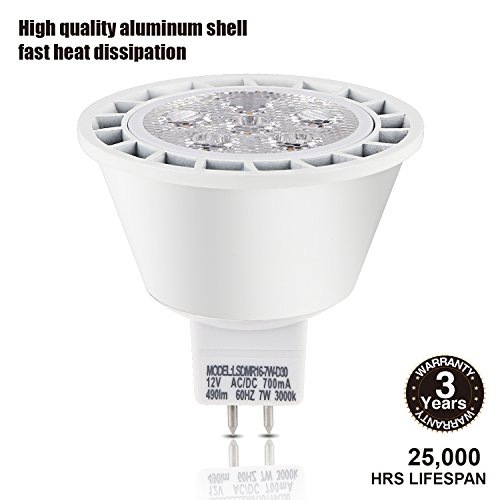 Dimmable MR16 GU5.3 LED Light Bulb, 7W (50W Equivalent), ENERGY STAR, 490lm, 3000K Warm White, 40° Beam Angle, Damp Location Available, 12V, 3 YEARS WARRANTY, Pack of 6