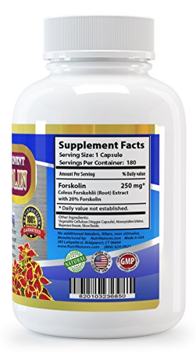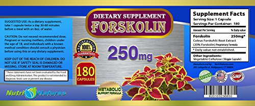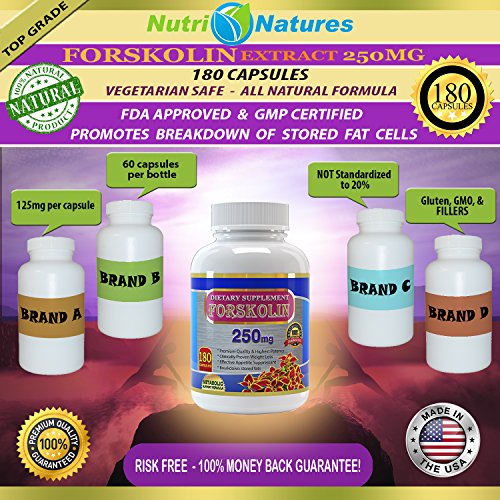 • ? COMPARE THE VALUE. YOU WILL NEVER REGRET IT - You will absolutely love NutriNatures' Forskolin. Our premium-quality, 180 capsules of 250mg high-potency 20-percent extract is great value for the money. If you are not completely satisfied, we will give you a refund with no questions asked. Get this risk-free deal with a 100 percent money-back guarantee. Compare with other products, and you will be definitely satisfied with the purchase!