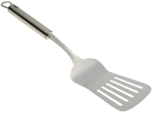 Amazon.com This slotted turner is just one of the high-quality Profi Plus tools WMF makes for every conceivable kitchen task. Slotted to flip burgers, bacon, and other foods when grease needs to be drained away, the 12-3/4-inch turner is especially useful for delicate foods like fish, with a flexible, thin head to slip beneath food. The head measures 5 inches long and 3-1/4 inches at its widest. Contemporary European in style, the turner is made of 18/10 stainless steel and is beautifully balanced, with a satin-finish, cylindrical handle, a heavy-duty hanging loop, and a highly polished shaft and head. Seamless construction ensures cleaning ease. This tool is dishwasher-safe, durable, and a joy to use for serious cooks and novices alike. --Fred Brack 0