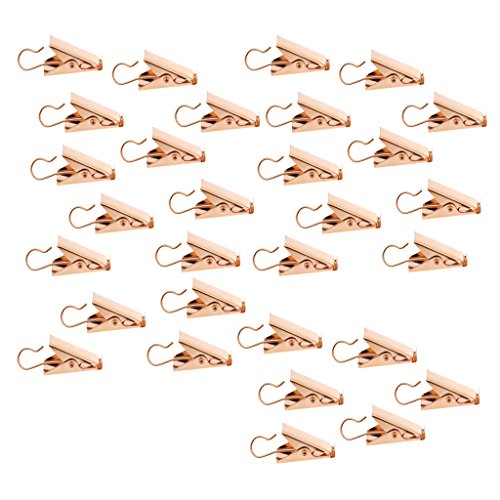 Specification: - Material:iron - Total length: approx. 38mm/ 1.50inch - Clip(LxW): approx. 26x11mm/ 1.02x0.43inch - Hook open: approx. 5mm/ 0.20inch Package Includes: 30 Piece Curtain Clips with Hook