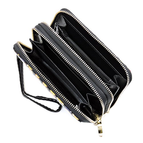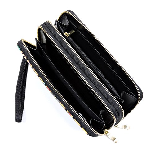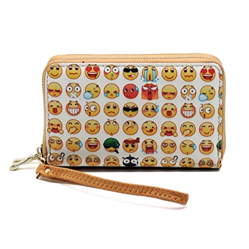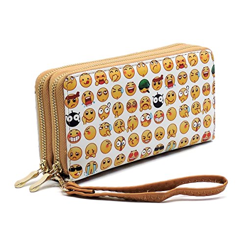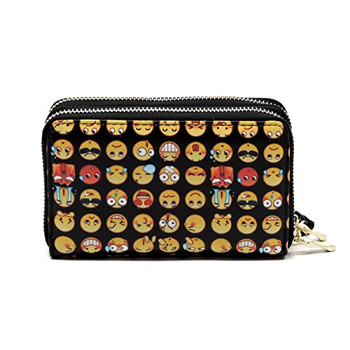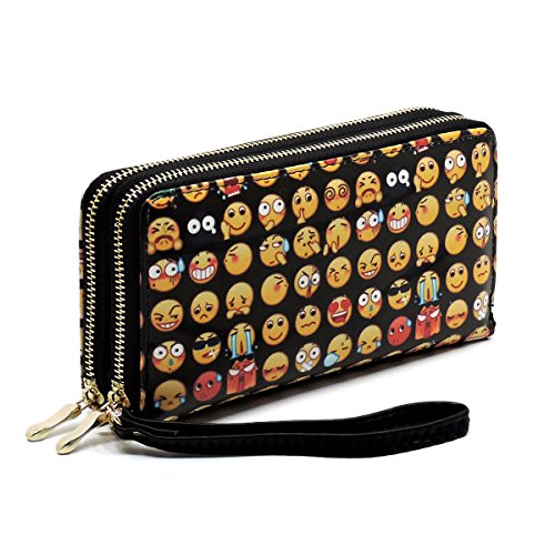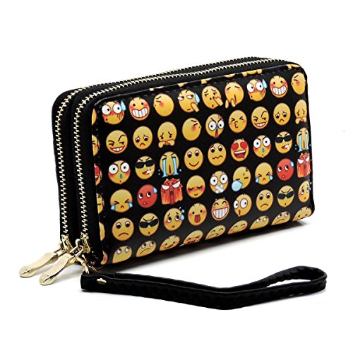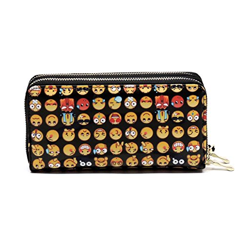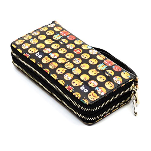 -. Title : Elphis Emoji P.R.Inted Double Zip Around Wallet Wristlet