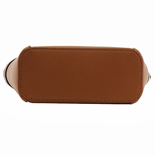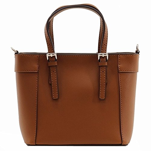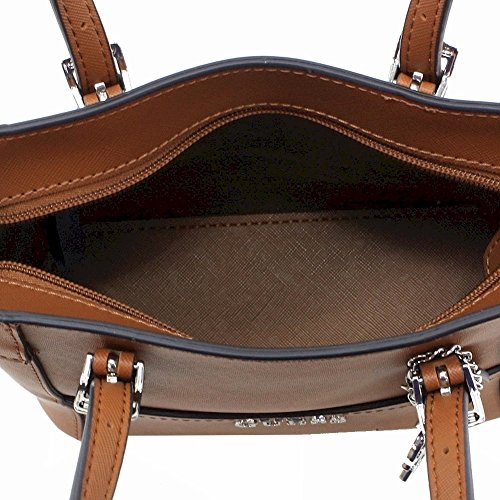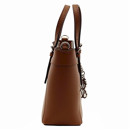 Saffiano-textured faux-leather exterior. Silver-tone hardware.