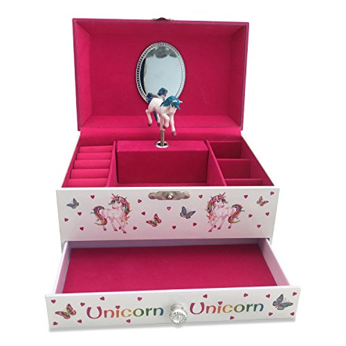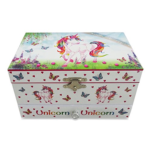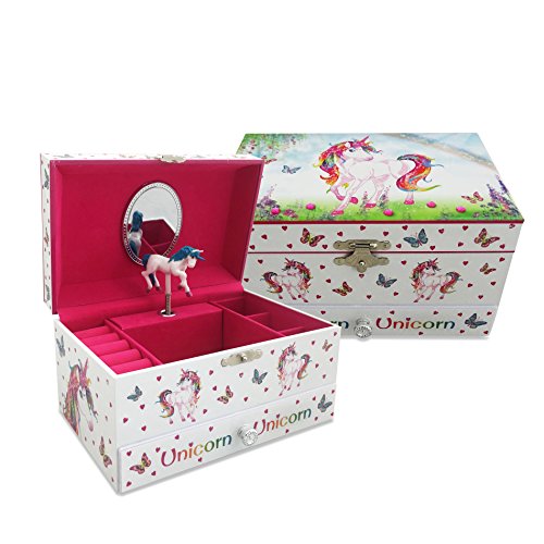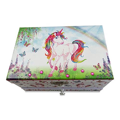 Magical Unicorn Kids Musical Jewelry Box - Pink Glittery Kids Music Box With Ring Holder - Lucy Locket