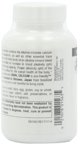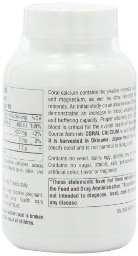 Coral calcium contains the alkaline minerals calcium and magnesium, as well as other essential trace minerals. An initial study on an alkaline mineral blend demonstrated an increase in blood alkalinity (pH) and buffering capacity. Proper alkalinity (pH) of the blood is critical for the overall health of the body. Source Naturals Coral Calcium is harvested in Okinawa, Japan from fossilized (dead) coral and is not harmful to living coral.