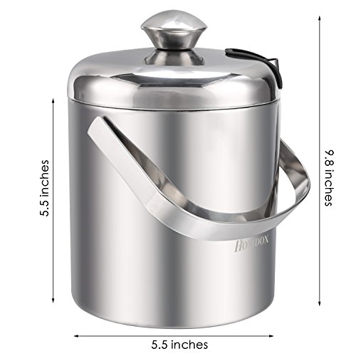 Studio : Homdox Publisher : Homdox Product Description 100% Brand New. Brand: Homdox Material: Stainless Steel Finish: Chrome Color: Silver Bottom Diameter: 14cm/ 5.5inch Bucket with cover height: 25cm/ 9.8inch Bucket height: 14cm/ 5.5inch Thickness: 1.2cm/ 0.5inch Capacity: 1200ml Item: Ice Bucket Net Weight: 680g/ 1.5 Pounds Thickness frame, it's can last long time Handle design, portable easily, it's good for home bar outdoor use Package content: Pack of Ice Bucket and Tweezers Note: Due to the difference between different monitors, the picture may not reflect the actual color of the item. We guarantee the style is the same as shown in the pictures, but not the same performance on different bodies as on the model. Thank you! 0