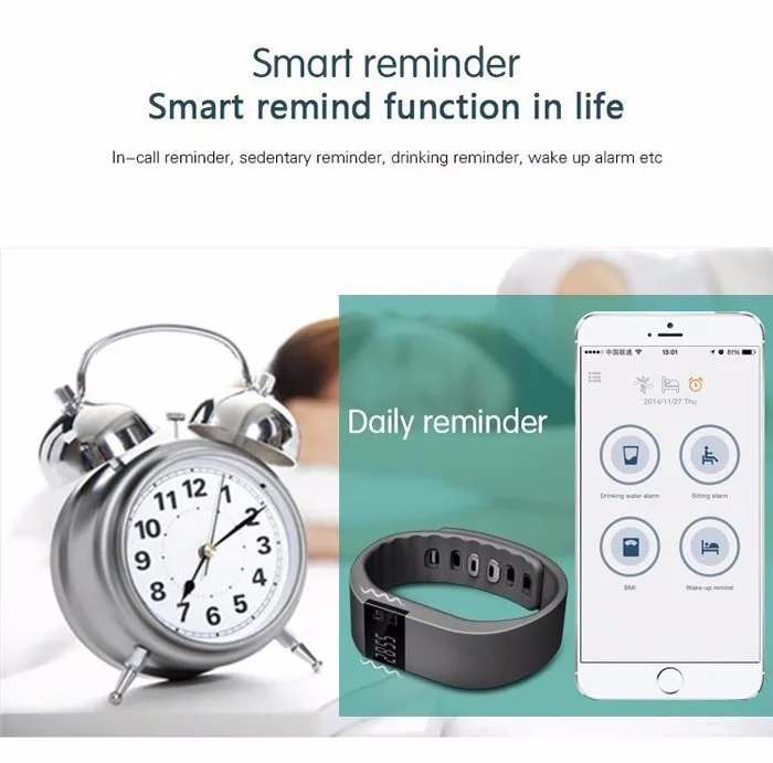 Features:call reminder, message reminder, clock, sedentary reminder, anti - lost, vibration alarm clock