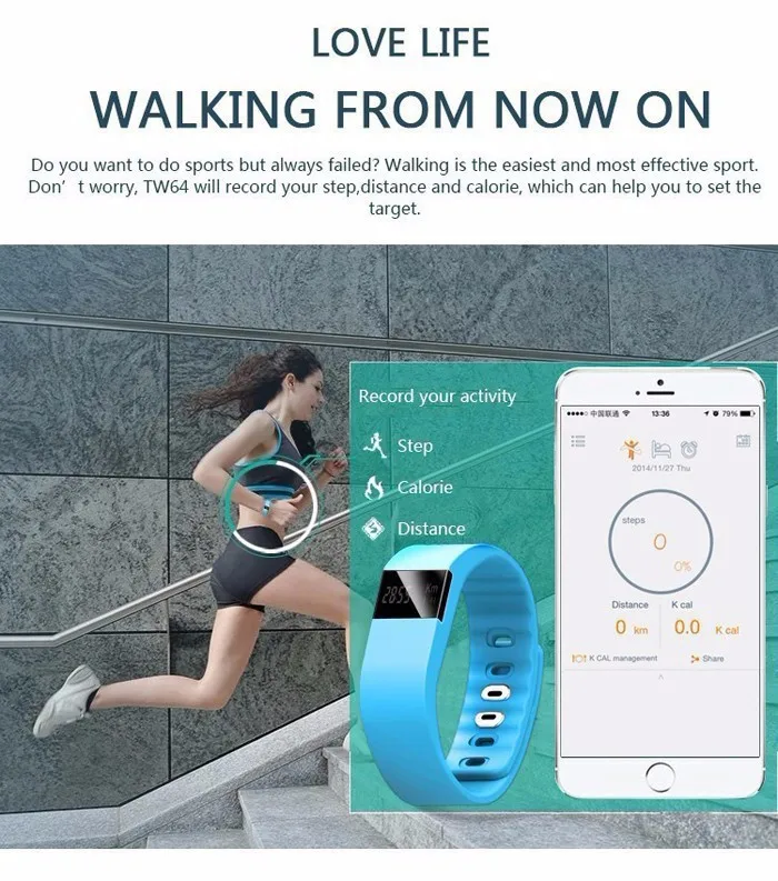 TW64 Smart Bracelet Bluetooth Pedometer Fitness Sleep Tracker Wristband Waterproof Fit Bit Bracelet For Android iOS Phone