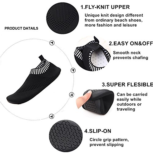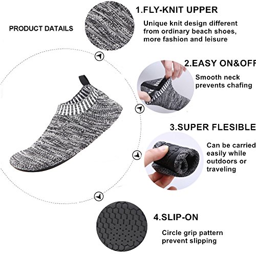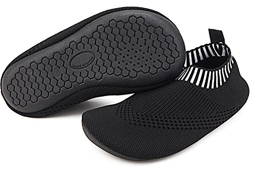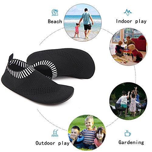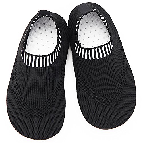-. Feature : SKIN-FRIENDLY UPPER--Special flying-knit upper with strong wicking performance,breathable and flexible / NON-SLIP&FOOT SAFETY--Circle grip pattern sole is thick enough to prevent your kids from slipping during walking or playing / EXTRA LIGHTWEIGHT--Only 80-180g per pair,snug like socks,super lightweight for toddlers to learn to walk or play indoors and outdoors,effectively reduce the pressure on children's feet / EASY ON/OFF--Smooth neck design prevents chafing and it can be wear and take off conveniently.Come with a plastic zipper storage bag, which is breathable for safe keeping while packaged / MULTI- FUNCTIONAL--It's a pair of unisex walking shoes for swimming,pool,beach sport,yoga,living room,playroom and gardening,leisure and sport activities