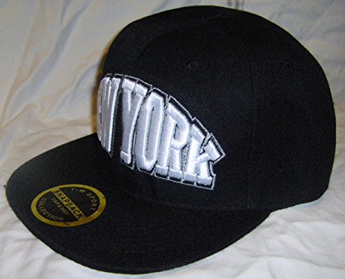 -. Binding : Misc. -. Brand : R&M Headwear -. Color : Black with white Lettering -. Department : Men -. Feature : Adjustable with Velcro Enclosure / One Size Fits All / Black with White Lettering -. ProductGroup : Sports -. ProductTypeName : SPORTING_GOODS -. Size : One Size Fits All -. Title : New York City 2-Tone Flat Bill Adjustable OSFA Snapback Baseball Hat Cap