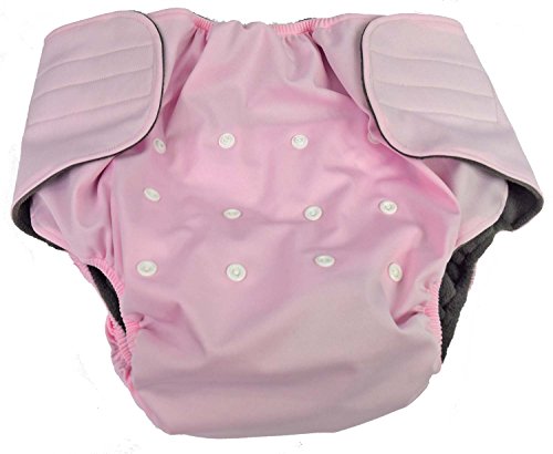 -. Feature : ECONOMICAL, EFFECTIVE INCONTINENCE SOLUTION--Each Hypoallergenic Diaper includes one Fleece-Lined Cover and one 4-Layer Insert Pad / OUTER SHELL is Waterproof, Soft, Protective, Polyurethane Laminate (PUL); INNER LINING is made of Stay-Dry Comfortable Microfleece, ELASTIC at WAIST and LEG Openings are Fully Encased to Cushion and Protect Skin against Rubbing or Chafing / INSERT BOOSTER PAD is Oversized (6 x 24 inches) and is made with 2 layers of Microfiber between 2 layers of Charcoal Bamboo for Maximum Absorbency and Odor Control / INSERT POCKET is constructed of Stay-Dry Comfortable Microfleece. Pocket is made to hold one or two booster pads in place, depending upon absorbency needs. (One multi-layer insert pad is included. Additional insert pads may be purchased separately). / CUSTOMIZABLE--Velcro Tabs allow for a Custom Fit and Adjustable 4x3 Rise Snap Sizing for Small, Medium, and Large Fit.