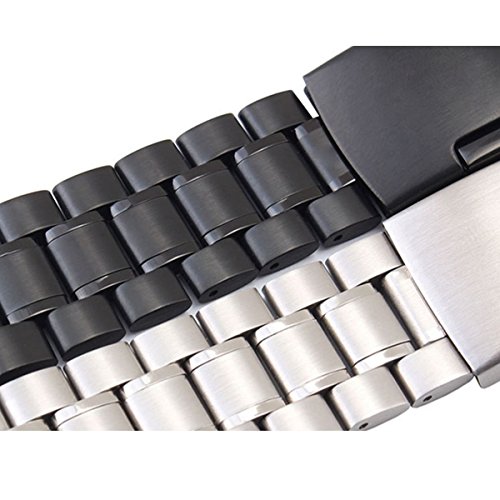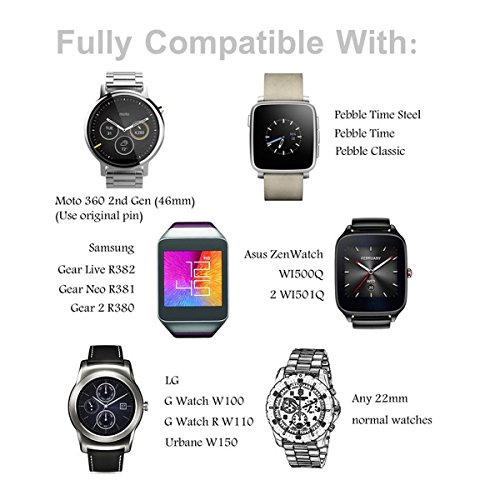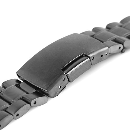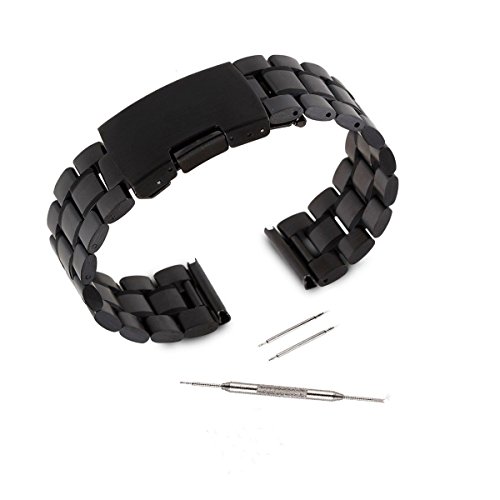 Kuxiu 22mm Stainless Steel Replacement Watch Band Strap for LG G R W100 W110 & Samsung Gear 2nd & Pebble Smartwatch Black Color + Tools