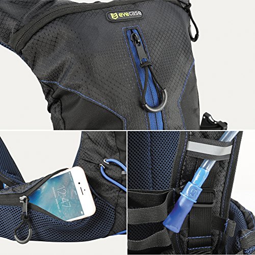-. Feature : Brand new Evecase Sport Daypack with 2.0L Hydration Bladder for biking, cycling, mountain biking, hiking, running, jogging, exercising or other outdoor activities. Fits Women & Men - Adults, Teenagers, or Youth. / Better Materials: Constructed of lightweight resistant Rip-stop nylon with heavy duty stitching and hardware for maximum durability. Mesh padded shoulder and back support for batter airflow and comfortable wear. / Ergonomic Support: Adjustable shoulder straps with sternum/chest and waist support to evenly distribute load weight. Sternum Strap Adjustable: Up to 50in. Waist Strap Adjustable: Up to 54in. / 70oz Bladder: Wide mouth 2L/70oz BPA-free food grade water bladder bag and bite tube included. The large water filling opening makes it easy to fill with water and ice cubes. Bladder Tube Length: 1M (3.2ft). / Maximized Space: Dedicated sleeve for 20L water bladders with extra compartment space to carry a jacket, maps, and other items. Front medium sized compartment to warry wallet, phone and other items. Side easy access pockets for keys, gum and other smaller items.
