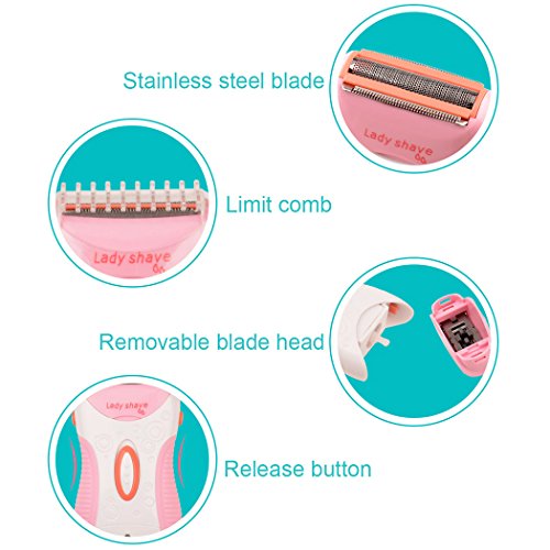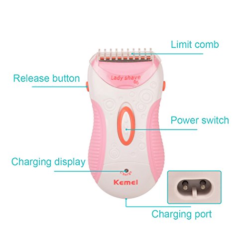 Feature : Safely removes hair no cuts or nicks and makes your skin silky and smooth. / This lady shaver is rechargeable, stainless steel blade removes even the shortest, finest hair from legs, face, underarms, bikini line and other sensitive areas easily. / Ergonomic grip for comfortable handling. / Ideal for all skin types. / Cordless use for a better convenience.
