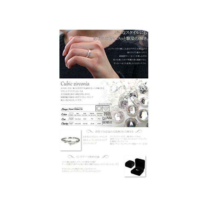 청초인 빛을 발하는 큐빅 지르코니아.반짝반짝과 당신의 손끝을 보다 아름답고 보여 줍니다.심플한 디자인 그러니까 어떤 복장으로도 광채,포멀에서도 캐주얼에서도 대활약해 줍니다.큐빅 지르코니아의 빛을 살리는 모아 두고, 트위스트 라인을 디자인에 도입,4개 손톱에 큐빅을 셋팅.더욱 더,실버925에 rhodium 코팅에,변색하여 어려운 마무리되게!!고급 링 케이스도 붙고, 선물,기프트에 있어서도 최적!!