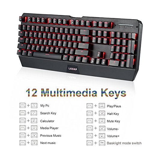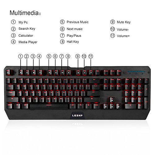 -. Title : Mechanical Keyboard, LESHP 2.4GHZ USB Backlit Gaming Keyboard Red Colors Backlight LED Wired Gaming Mechanical Keyboard with 104 keys No Driver Required -Black