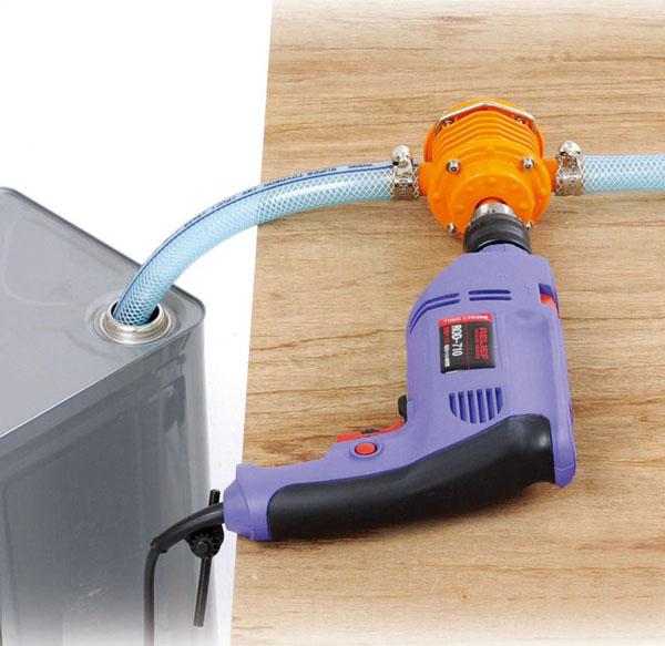 | お手持ちの電気ドリルに装着することでポンプとして使用できます。1分間あたり最大約48Lの吐き出し能力があります。 |