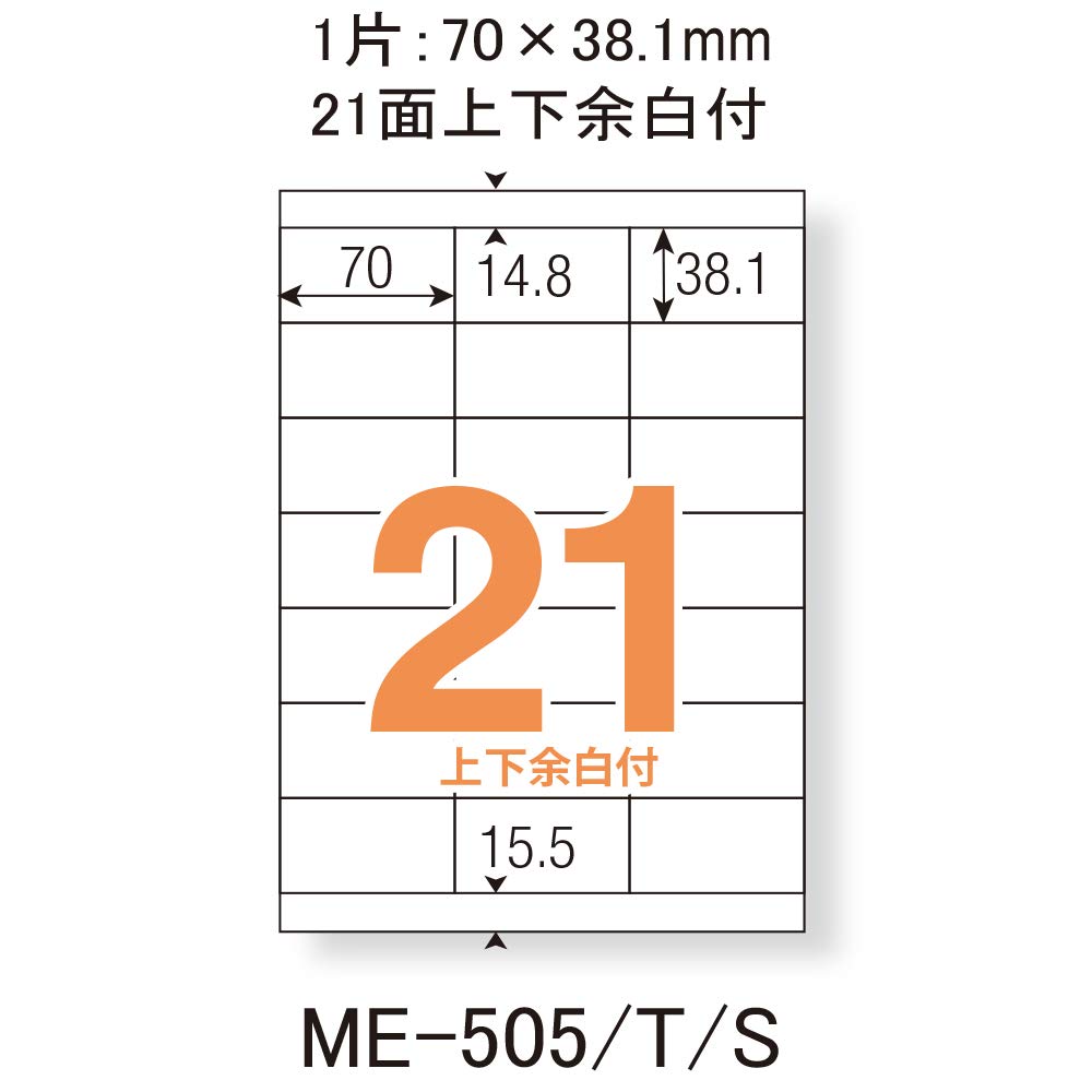 FSC認証紙を採用。「適切に管理された森林」に由来する製品であると保証された「環境配慮型の商品」。 宛名・住所・商品・ロゴ・タイトル・収納内容・値札表示などに 規格:A4 21面上下余白 一片:70×38.1m 数量:20シート入(21×20=420片入) 紙厚:総厚:124µm(0.124mm)、ラベル厚:71µm(0.071mm)、ラベル坪量:70g/㎡