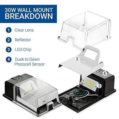 ✔ SAVE 80% INSTANTLY - The Hyperikon wall pack led light is energy efficient and saves your electricity bill by up to 80% when replacing 150W with 30W!
