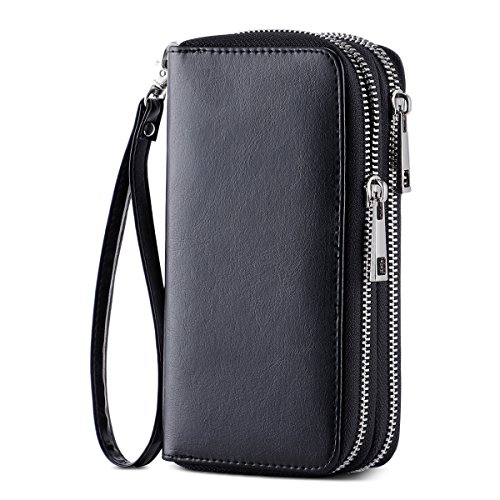 HAWEE Cellphone Wallet for Women Dual Zipper Long Purse with Removable Wristlet
