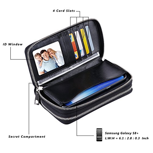 - Dual zipper wallet with size of 6.9*3.5*1.9 inch, spacious room for private belongings like card, note, coin, cell phone, easy to take anywhere;