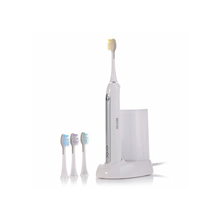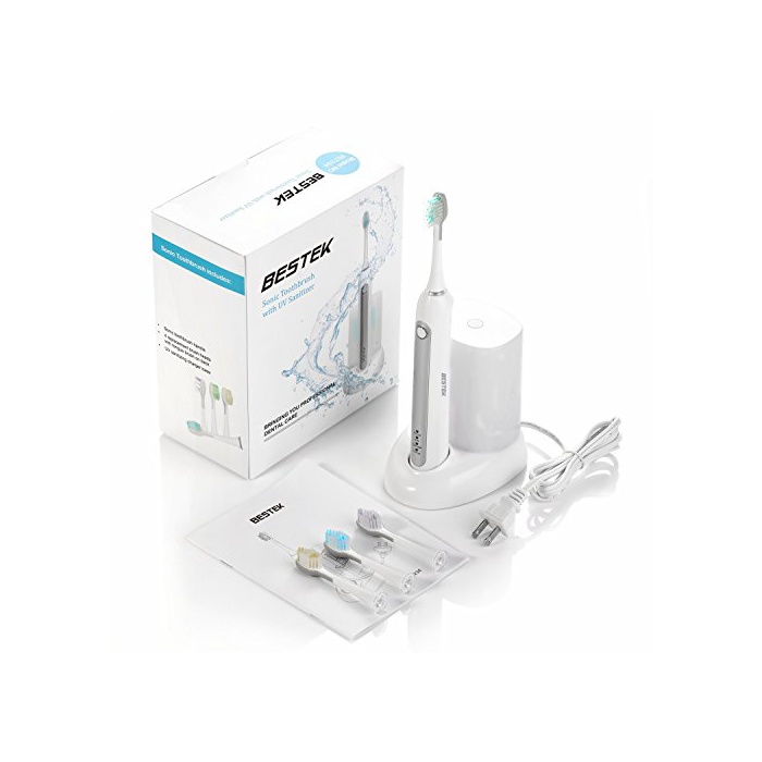 BESTEK 전동 칫솔 음파 칫솔 음파 진동 칫솔 3개 모드 탑재 UV제 균기부착 교환 브러시4개입 설브러시 IPX7 방미즈나시 접점 충전식 브러시 헤드 스탠드부 화이트 RLT23