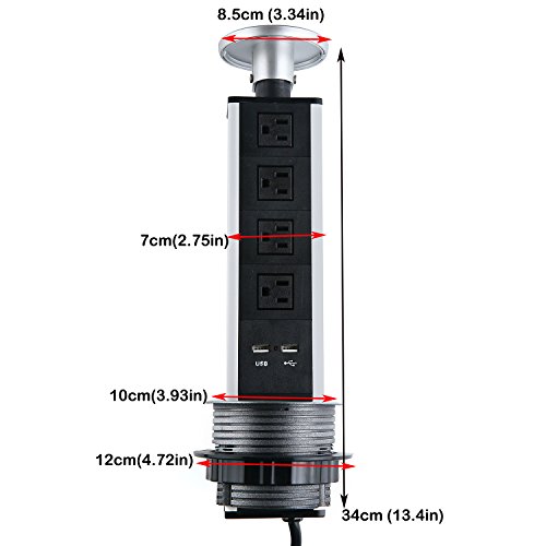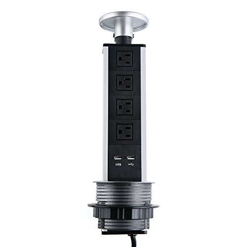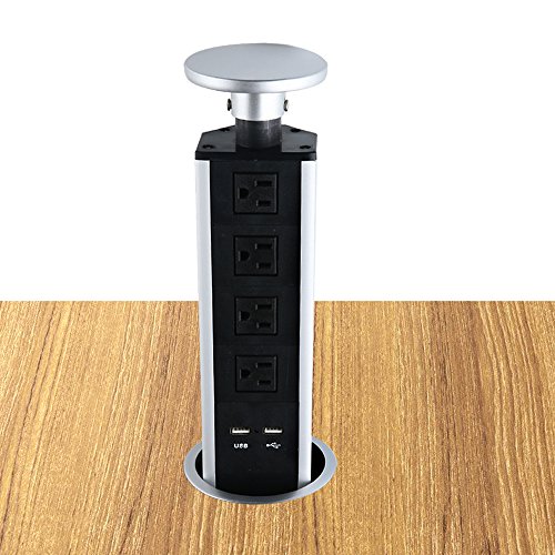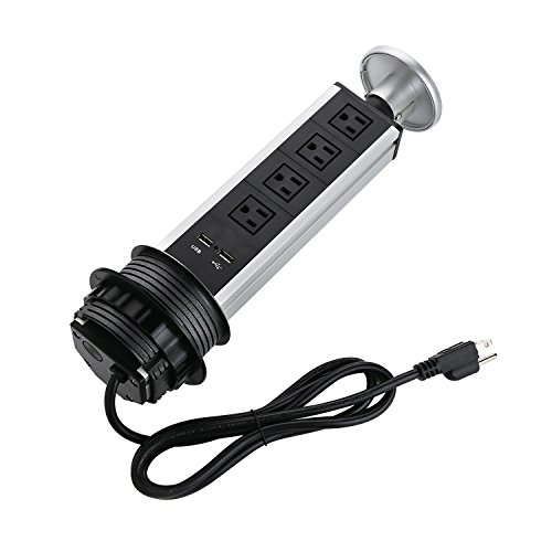 Retractable Pop Up Power, 4 US Plugs & 2 USB Ports Tabletop Power 110-220V/50HZ Input for Household Kitchen / Conference Room / Office / Wall
