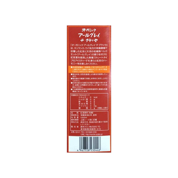 원본상품명:有機アイスティ? オ?ガニック テ グラッセ ア?ルグレイ無糖 1,000ml