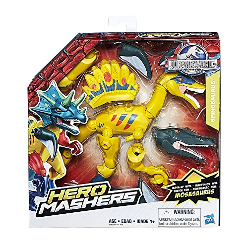 -. Feature : Jurassic World Hero Mashers figures are totally customizable / Spinosaurus figure can become a hybrid dino / Mash up with Mosasaurus (sold separately) to build a Spino-Mosasaurus / Legs, tails, and claws detach / Includes figure and 6 accessories