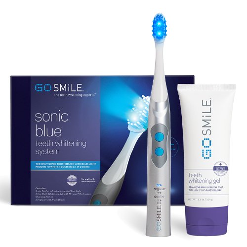 ReleaseDate : 2016-05-17 Studio : Fab Products Publisher : Fab Products Binding : Health and Beauty Product Description Being busy doesn't have to keep you from whitening your teeth. You can now get a dramatically whiter smile while you brush - no separate whitening process required! The innovative Sonic Blue System provides fast-acting light-powered whitening, built right into a sonic toothbrush, to improve the health AND appearance of your smile at once. The best way to clean your teeth is now also the best way to whiten, for impeccably clean and beautiful teeth every day. Simply use the included Teeth Whitening Gel with your favorite toothpaste, morning and night. Many toothpastes and sonic brushes claim to whiten by removing surface stains, but that won't make a significant difference in the color of teeth. A lot of visible staining actually exists beneath the enamel. Sonic Blue's gel doesn't stop at the surface - its whitening power gets INTO teeth to remove even older, set-in stains. The blue light emitted by the brush head works with the gel's HyperoxTM technology to speed up penetration and stain removal. You could see a difference in as little as 2 days, and your teeth will look whiter and brighter every day. The system is clinically proven as effective as a leading whitening strip! The powerful vibration of the Regular setting can be adjusted to a Gentle mode, if you prefer. It is safe to use on dental work, such as crowns, veneers, bonding and other dental restorations. The brush head is thicker and wider than many sonic toothbrush heads, to help distribute the light for better whitening and make room for the high performance bristles. White antibacterial bristles help keep the brush head clean between uses, and blue bristles fade to white over time, so you know when it's time for a new brush head. Rubber gum massagers along the sides of the brush head help clean at the gum line, where it matters most. After a few uses, you'll never want to go back to an ordinary toothbrush! 0