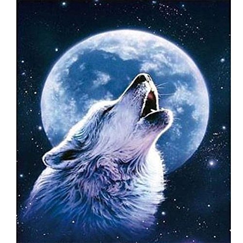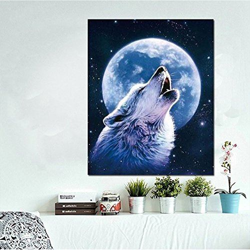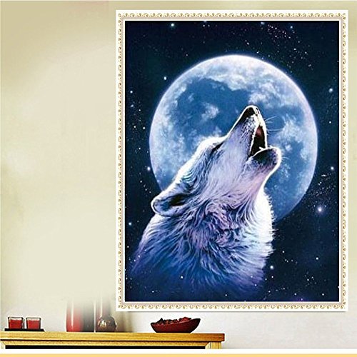 Fipart DIY diamond painting cross stitch craft kit. Wall stickers for living room decoration.Wolf(12X14inch/30X36CM)