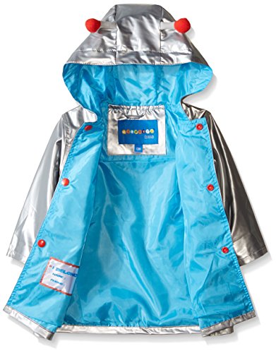 Hooded water resistant rain jacket with robot printed art work