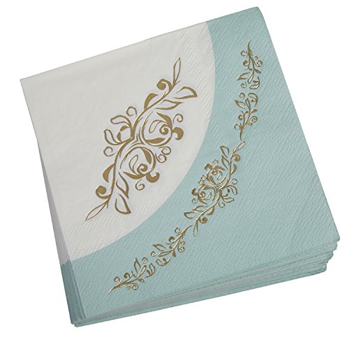 Made from 3-ply paper, the napkins feature a delicate design in turquoise.