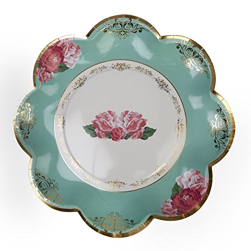 Stunning scalloped edge plates. Made from robust paper, the design on the plates recalls classic vintage crockery, with its gold edging and floral motifs.