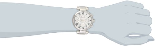 Dress watch, Japanese movement, Polished silver-tone hands, Black Roman numerals and indices, Analog date display, Polished stainless steel silver-tone bezel, case, crown, selector buttons and caseback, Polished stainless steel silver-tone adjustable link bracelet with a push button fold over deployment clasp, 50 meters/165 feet water resistant