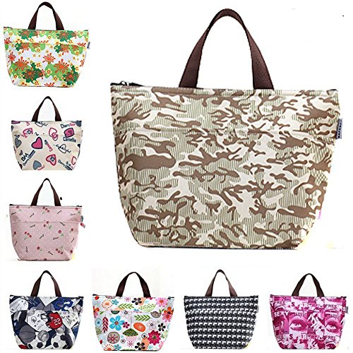Eforstore Waterproof Picnic Lunch Bag Case Tote Reusable Bags Insulated Cooler Travel Zipper Organizer Box for Women Men Kids Girls Boys Adults (Khaki)