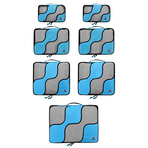 -. Feature : 1. MATERIALS- HISEA travel packing cubes is made of soft and smooth polyester fabric, waterproof and lightweight to pack more in less space, A best carry-on luggage organizer / 2. FOUR VARIOUS CUBES - Four sizes can be used for your different packing purpose, with 8 pieces set to save space and make luggage clean and tidy, included 1PCS Extra Large Size: 17.5"×12.75"×4"; 2PCS Large Size: 13.75"×12.75"×4"; 2PCS Medium Size: 13.75"×9.75"×4"; 2PCS Small Size: 11"×6.75"×4"; and 1PCS Shoes Bag: 13.6"×20.25" (could also be used as a small laundry bag to help separate your dirty clothes). / 3. MULTI-FUNCTION - Keep your things organized, great for packing bulkier items, save your clothes from stains, wrinkles and damages while traveling. Differing sizes also allows them to be fit and be stored in any type of daypack, backpack, suitcase, tote and duffel bags in order to fit your unique traveling style. Also could be sent to friends as a PRACTICAL GIFTS; / 4. HUMANIZED DESIGN - With double stitched seams that resists wear and tear, high-quality zippers with pull string for easier open and close, with breathable mesh top for ventilation and quick visibility, easy to clean and machine washable. / 5. 100% SATISFACTION GUARANTEE - HISEA would provide full refund or replacement to our customers if they do not satisfy with this packing cubes, Buy it Now and Keep your Things Organized ;