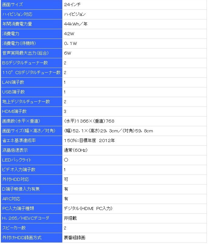 ●17時間分のテレビ録画が出来る!128GBのUSBメモリーがセット済み。USBハードディスク無しで、お求めのその日から、お好きな番組が録画できます。●2チューナ搭載で裏番組録画が可能テレビ視聴用のチューナーとは別に、録画用のチューナーを搭載。視聴中の番組とは別の番組も録画できます。例えば、地上デジタル放送を観ながら、別チャンネルの地上デジタル放送を録画することもできます。●料理番組のレシピなどが確認しやすい「静止画機能」必要なシーンで動画を静止させられます。キャンペーンの応募先を書き留める際にも便利です。●番組の音量変化を自動的に調整する「ぴったり音量」CMや番組の切り換わりなど、音量が大きく変わる時に、音量の変化を自動的に調整し、聞きやすくします