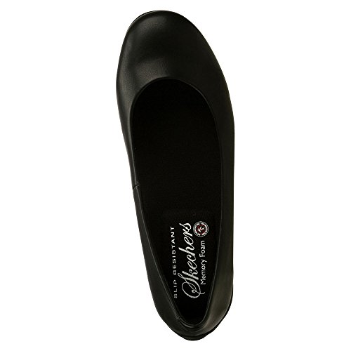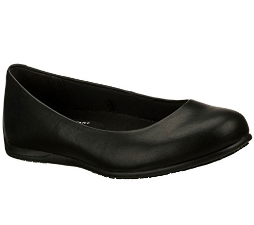 Studio : Skechers for Work Publisher : Skechers for Work Binding : Apparel Product Description Simplify your style while maximizing your on-the-job comfort level in the Skechers Work Flattery-Transpire ballet flat. Perfect for those in education, the medical field or service industries, this women's slip-on flat shoe has a faux leather upper with a lightly padded topline and moisture-wicking fabric lining. The cushioned footbed includes added memory foam under the heel to protect on heel strike. The Skechers Work Flatter-Transpire dress work shoe is finished with an ASTM-rated, slip-resistant rubber outsole to keep you and your busy day on track. 0