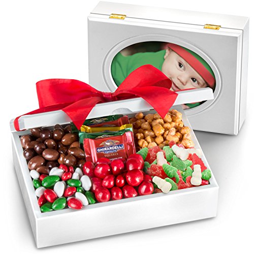 -. Binding : Grocery -. Brand : Golden State Fruit -. EAN : 0819354010180 -. Feature : A festive assortment of holiday themed treats in a keepsake photo box / Decadent chocolate, sweet candy and freshly roasted nuts / Packed to order in a white keepske box with a photo frame lid / A thoughtful holiday gift for family members or friends / Snacking for 4-6. Gift messaging available at checkout -. IsAdultProduct : 0 -. Label : Golden State Fruit -. Manufacturer : Golden State Fruit -. NumberOfItems : 1 -. PackageQuantity : 1 -. ProductGroup : Grocery -. ProductTypeName : GROCERY -. PublicationDate : 2012-11-13 -. Publisher : Golden State Fruit -. Studio : Golden State Fruit -. Title : Holiday Sweets and Treats in Keepsake Photo Frame Box -. UPC : 819354010180