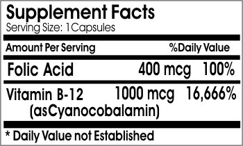 Studio : PureControl Supplements Publisher : PureControl Supplements Binding : Health and Beauty Product Description Folic acid (folate) is a member of the B-complex family. It is found in abundance in leafy green vegetables. Folic Acid and B-12 together provide a powerful choice. Folic acid participates in a coenzyme reaction that synthesizes DNA needed for cell growth and new cell formation, and helps convert vitamin B12 to one of its coenzyme forms. DIRECTIONS: For adults, take one (1) capsule daily before a meal. 0