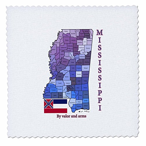 3dRose Flag, Map and Motto of Mississippi with All Counties Labeled - Quilt Square, 6 by 6-Inch (qs_195258_2)
