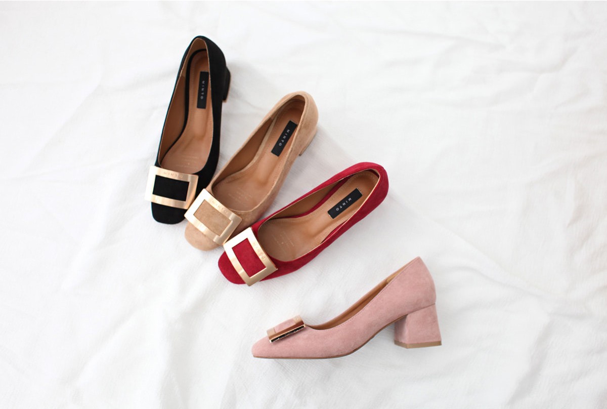 レディースファッションの婦人靴(レディースシューズ)の分野でパンプスは代表的なカテゴリー。スニーカー、ミュール、サンダルなど数かあるレディスファッションシューズの中でも最もスタンダードな種類で痛くないフラット(ぺたんこ)やピンヒール、ローヒール、オープントゥ、ストラップ、太ヒール、厚底、ポインテッドトゥ、バイカラー、リボン付きや、ひょう柄、メッシュなど種類や形状も多く存在し最も女性らしさを引き立て世界で多くの女性に愛されています。