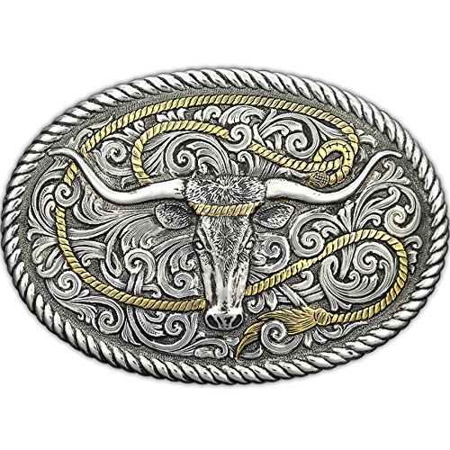 Binding : Apparel Product Description Gist Silversmiths Round-Up Collection Gold/Silver Ropin' Steer Belt Buckle