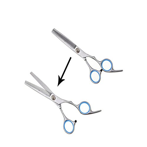 - Feature : Package included: 1 x regular hair scissors; 1 x thinning scissors; 1x leather cleaning cloth, 1 x grooming comb / Comes with a leather case / Scissors' length: 6 inch / Made of tempered stainless steel for maximum longevity / The cutting scissors are precision micro serrated, extremely sharp
