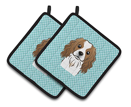 Caroline's Treasures Checkerboard Blue Cavalier Spaniel Pair of Pot Holders BB1162PTHD, 7.5HX7.5W, Multicolor