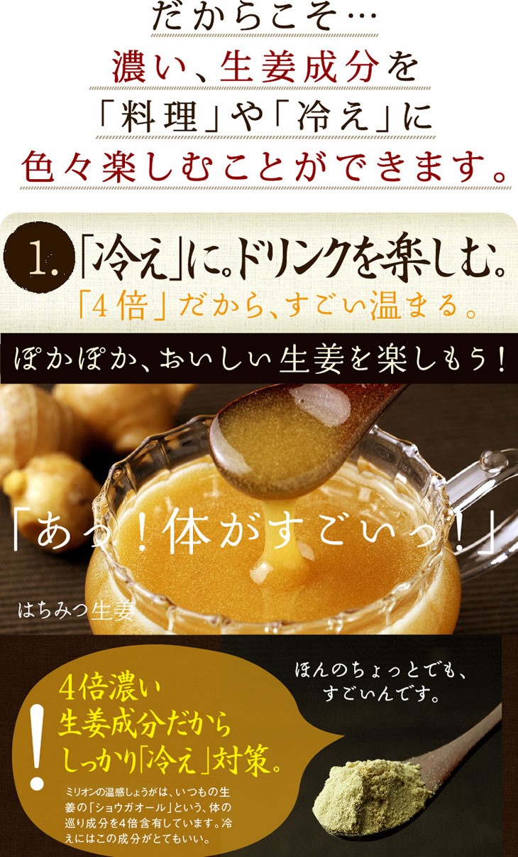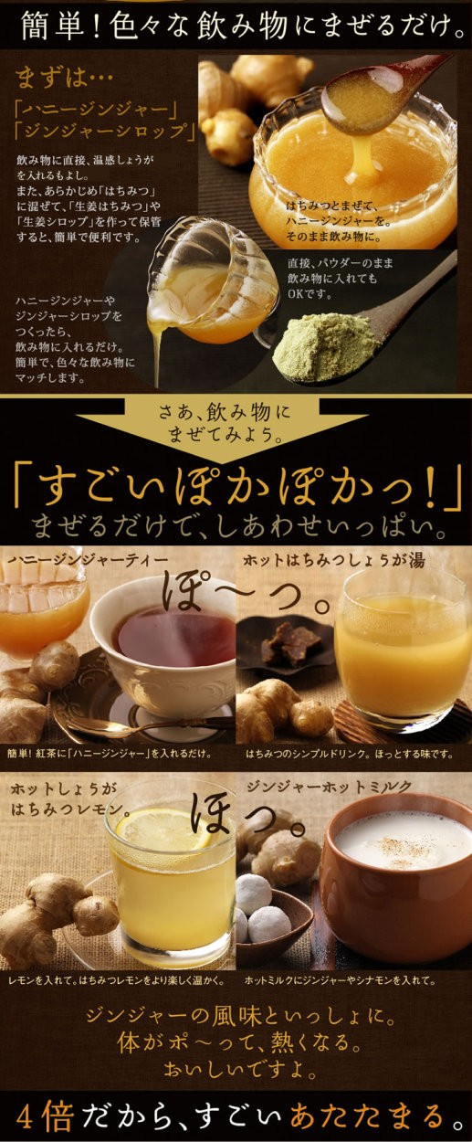 ◆ はちみつと混ぜてハニージンジャーをそのまま飲み物に。