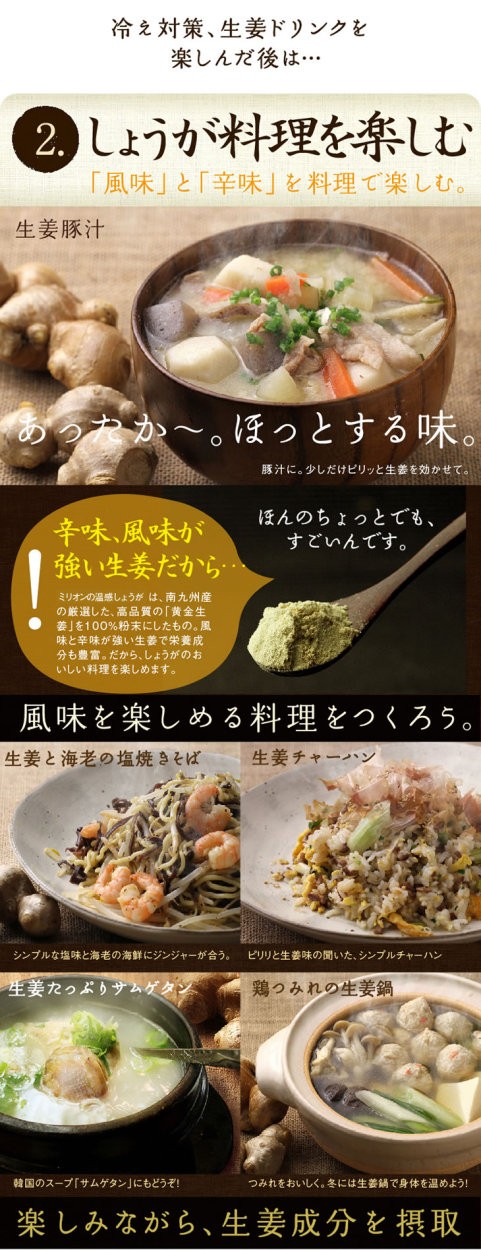 ◆ 豚汁や生姜鍋、炒飯に入れて風味を楽しめる生姜料理に。