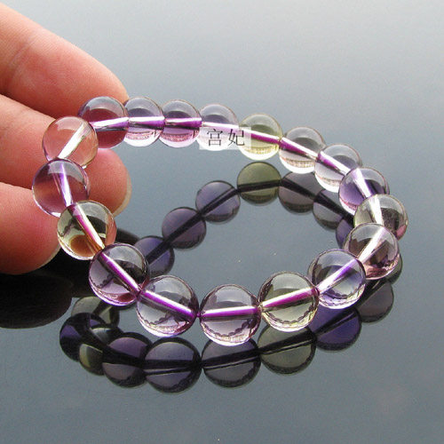 开光紫黄水晶手链 晶体透彻 颜色鲜艳 女人
