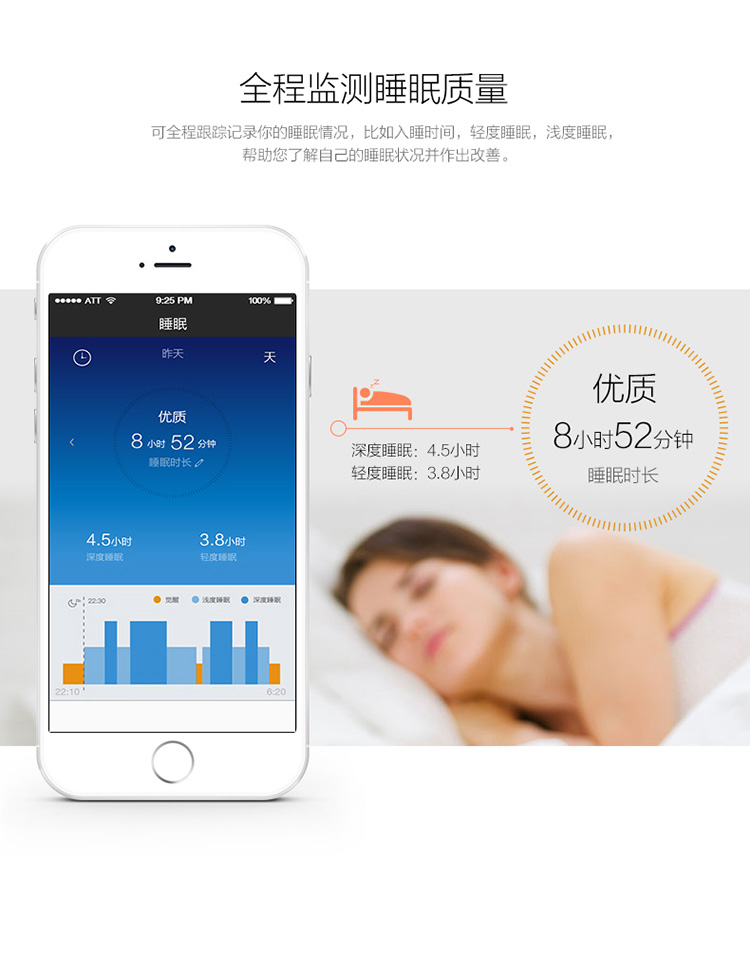 -OLED screen shows the Steps, Calorie, Distance, Time, Sleep quality clearly.
