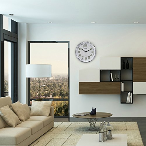 Plumeet 13-Inch Wall Clock with Silent Non-Ticking Night Lights for Indoor Kitchen of Large Number Battery Operated (Silver)